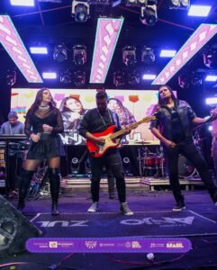 A banda Anjo Azul assumiu o palco com energia contagiante, embalando o público com seus maiores sucessos do forró. Com uma mistura de romantismo e animação, a apresentação fez todos dançarem e cantarem juntos. Foi uma noite inesquecível.