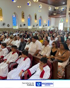 pós o hasteamento das bandeiras, foi celebrada uma missa solene em comemoração aos 95 anos de emancipação política de Macaparana.